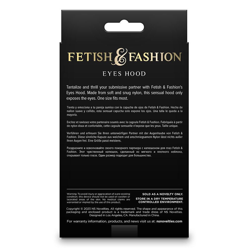 Please note that the Fetish & Fashion Open Eyes Bondage Hood does not include a rear opening for high hairstyles. We recommend wearing this hood over your loose hair or gathering your hair into a low ponytail or braid if you have long hair.