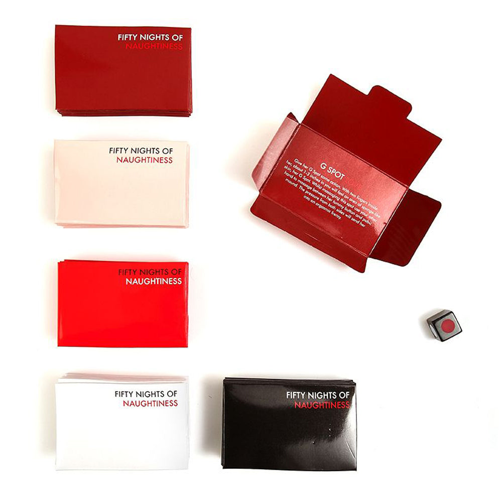 This game for adult couples offers 50 thrilling new fantasy fulfilment adventures for anyone who wants to spice up their relationship with some kinky capers. Inspired by the Fifty Shades Of Grey phenomenon that enthralled BDSM-lovers worldwide, Fifty Nights of Naughtiness provides an assortment of steamy scenarios to deepen any couple's passion for each other.