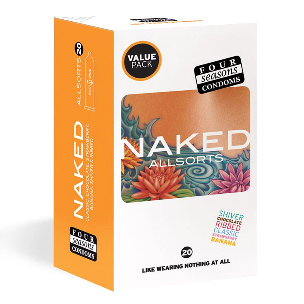 Spice up your bedroom fun tonight with the Four Seasons® Naked Allsorts Latex Condoms Variety Pack!