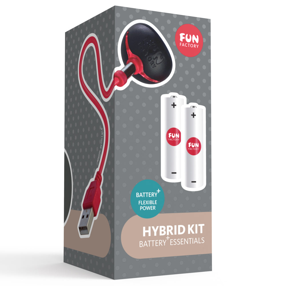 The Fun Factory Hybrid Sex Toy Battery Kit lets you effectively turn your Battery+ sex toy into a rechargeable vibrator at will, by charging your rechargeable batteries without ever taking them out of the sex toy. The sex toy battery kit comes with two rechargeable batteries and a Click'n'Charge cable.