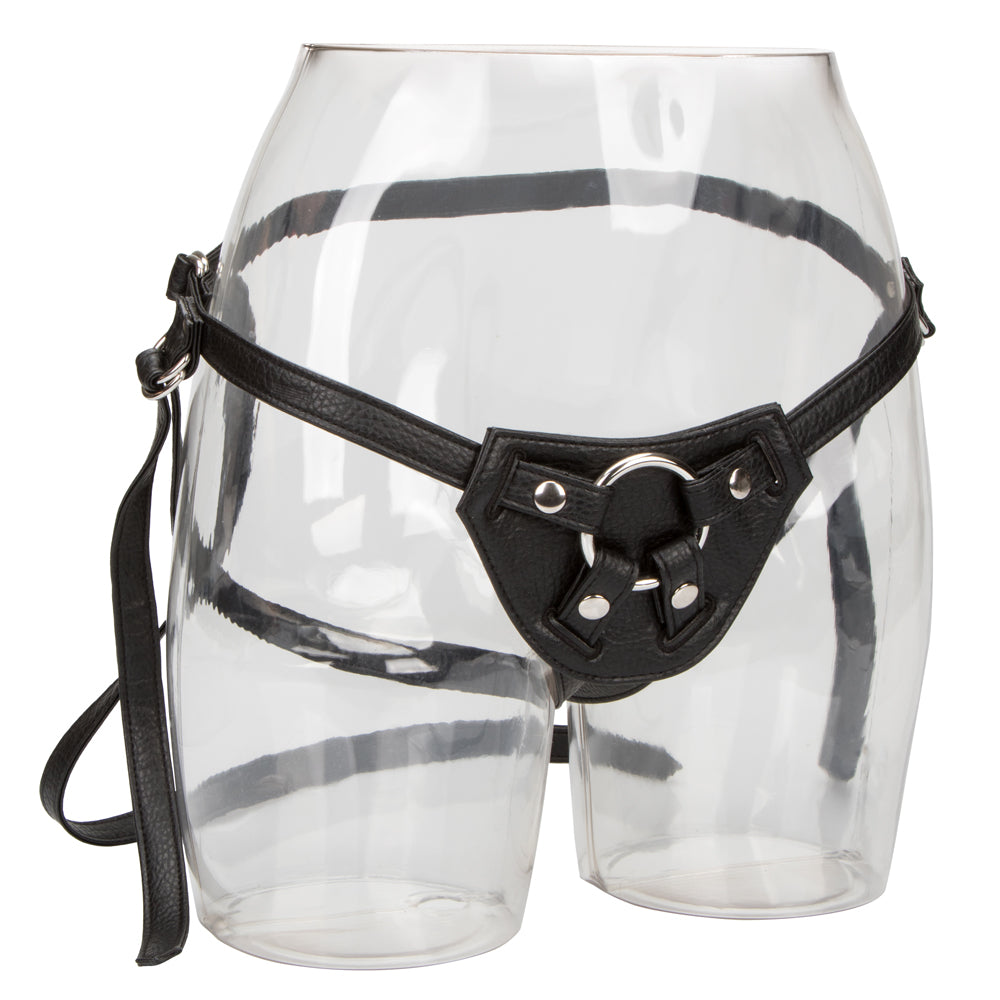 This luxurious harness is made for performance and comfort with a low-profile design, crotchless functionality, and a customisable fit. The crotchless design is perfect for the wearer to have more freedom of movement and also access their intimate areas for more fun! The faux leather straps feature a pull-to-cinch design so you can easily get the perfect fit around your waist and thighs, and the straps tuck neatly into the built-in keepers so your silhouette stays neat during play. The O-ring can accommodate dildos with flared bases up to 5cm in diameter, with snap buttons so you can swap between rings (sold separately) and use different toys for maximum versatility. Best of all, the stylish faux leather is vegan-friendly for everyone to enjoy!