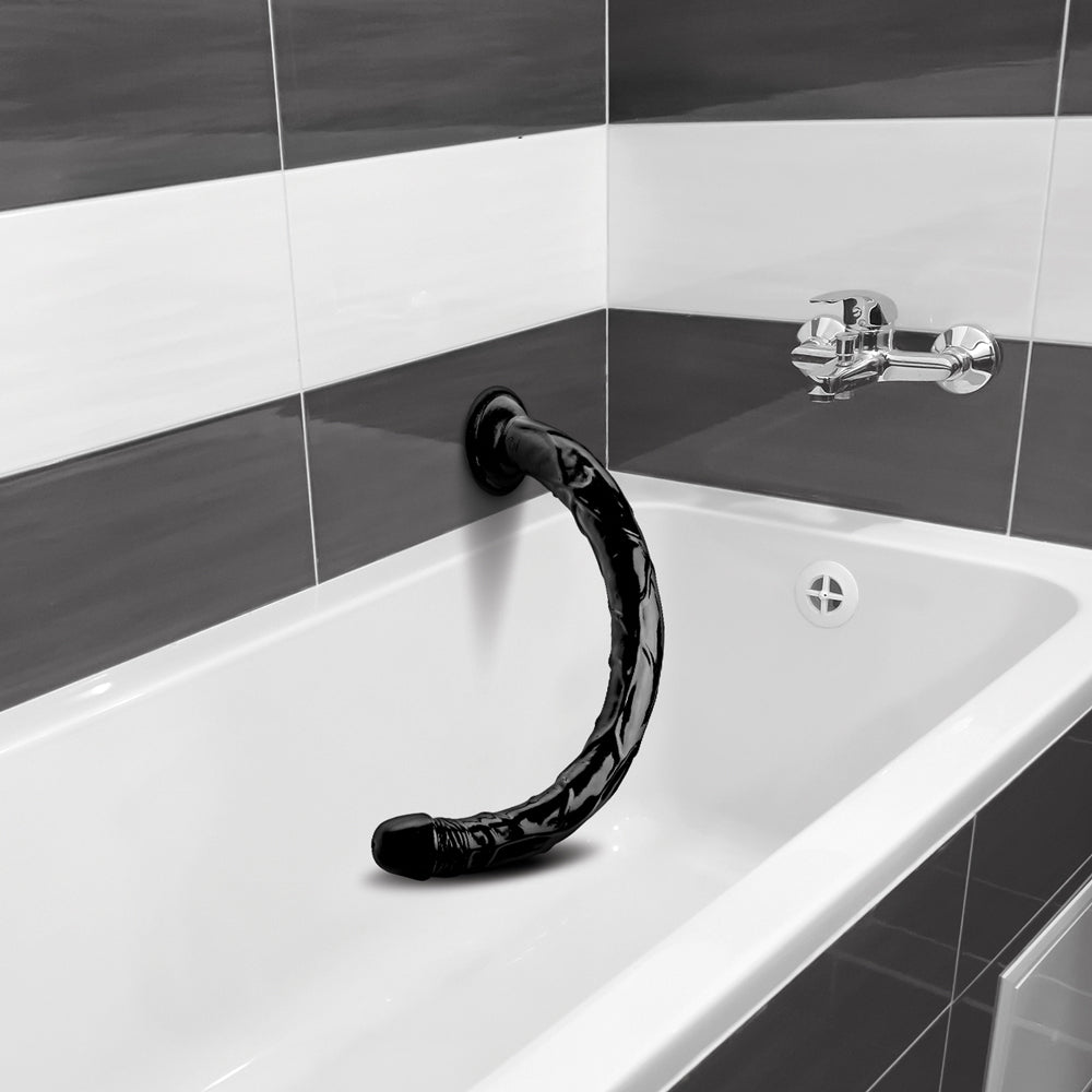 The Hosed 19" Realistic Anal Dildo is capped by a suction cup base that lets you go for a hands-free ride on flat, solid surfaces. The smooth but firm material is a cinch to clean afterwards with warm water and toy cleaner so your big black beauty is ready to fill and fulfil you next time!