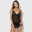 - Simple yet sexy design with a stretch mesh skirt & appliqué lace accents