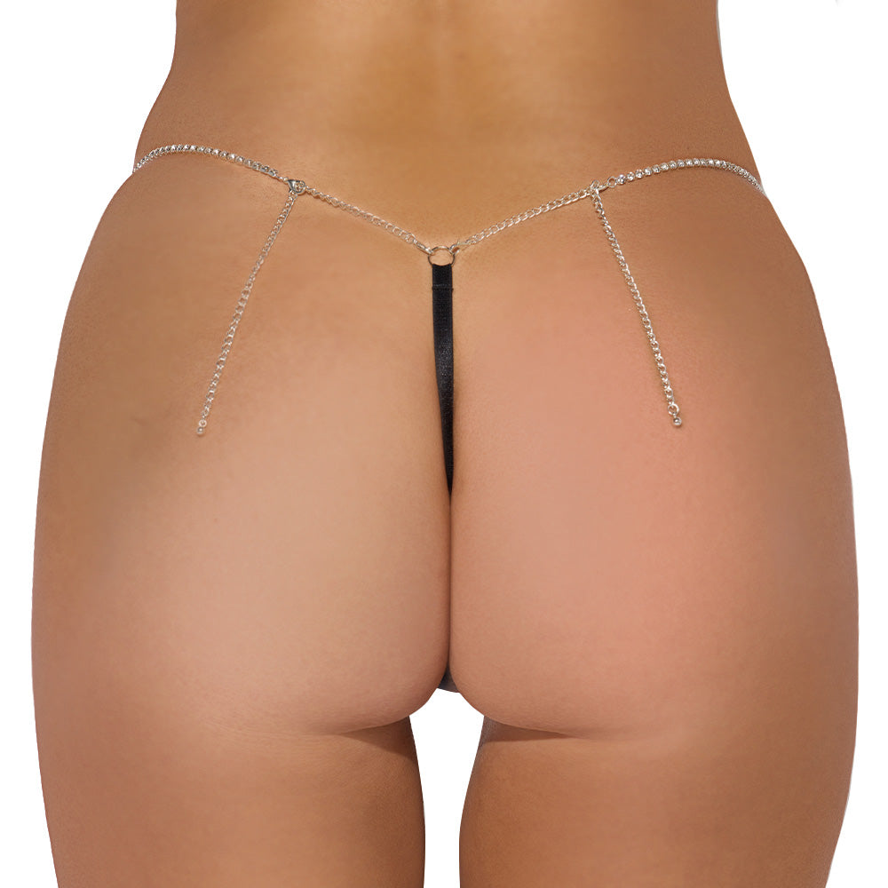 Indulge in glamorous seduction with House of Desire's Krystal Rhinestone Chain Side G-String!