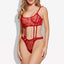 This unique lingerie set is sure to send any onlookers' jaws to the floor with its rose-patterned mesh and sexy quadruple suspender design that joins the top to the panty waistband. The feminine, sheer material lets your body peek through from behind the floral design while dainty scalloped picot trim outlines the top and panties. Satin piping details on the side of the bust add a touch of luxe to the look and extend into the suspenders — the quartet of suspenders is detachable so you have more versatility when you wear the Melrose Lingerie Set!
