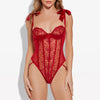 This lovely teddy is sure to get hearts racing thanks to its sheer, rose-patterned panels and silky satin tie-up shoulder straps that simply beg to be undone. The feminine floral pattern lets your body peek through the transparent mesh, with satin piping details streamlining and elongating your torso. The supportive underwired cups lift and shape your bust, accented by a frilly outer edge to complete the shape of the uppermost roses. Meanwhile, the satin demi-cup design adds luxurious visual detail to your look and extends up your shoulders with silky satin ties that you can adjust for your perfect fit!