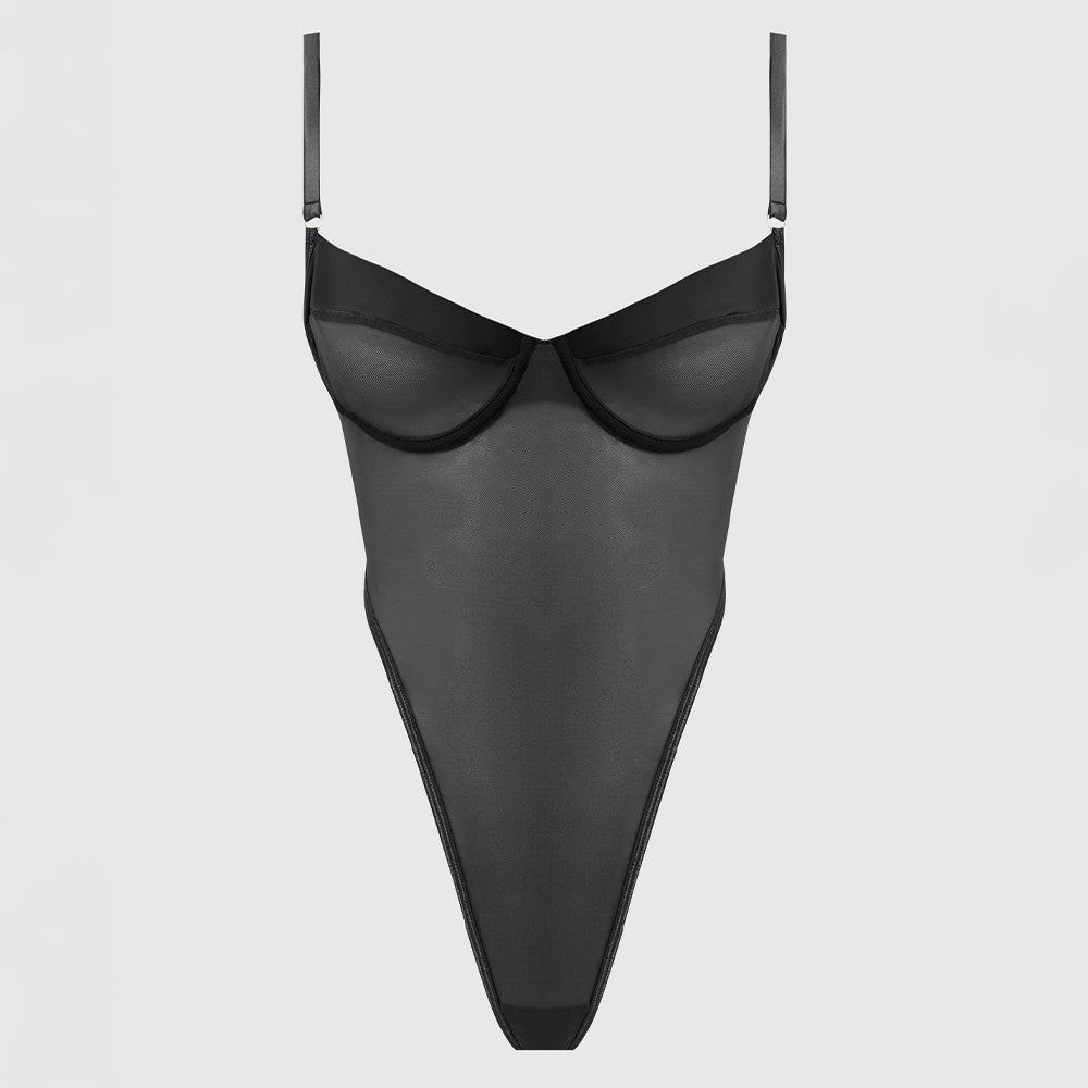 Look and feel like your most confident self in the Raquel Sheer Mesh & Satin Strappy Back Teddy from House of Desire!