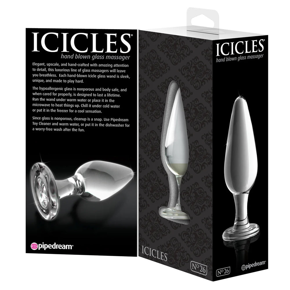 Treat yourself to the smoothest sensation ever back there with the Icicles® No. 26 Slim Glass Anal Plug!