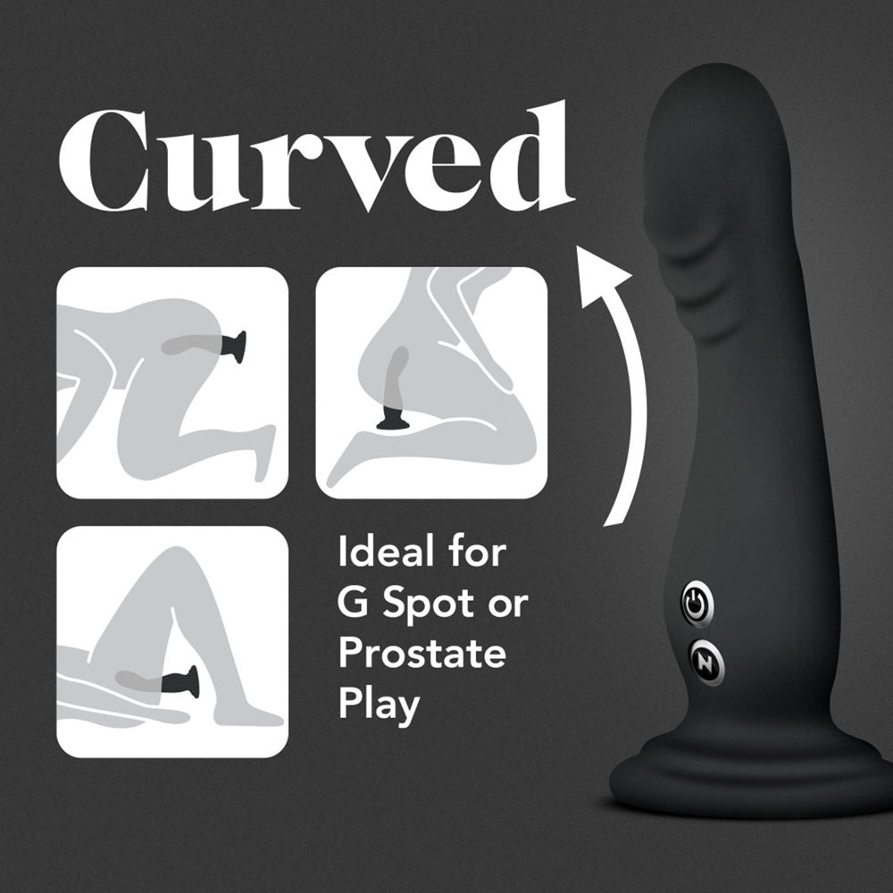 This firm yet flexible dildo features a Rumble Tech™ motor made from tungsten for 10 deep and powerful vibration modes like no other. You can use the intuitive 2-button controls (on/off and vibration setting) to cycle through 5 speeds and 5 patterns to find your ultimate pleasure! The ribbed silicone head has a slightly bulbous shape that's perfect for stimulating the G-spot or P-spot, and the flared suction cup base makes this toy safe for vaginal or anal play. The super-strong suction cup mounts to any flat, solid surface and lifts off easily when you use the dedicated pull tab. The suction cup is also harness-compatible if you feel like bringing a travel buddy along on your journey...