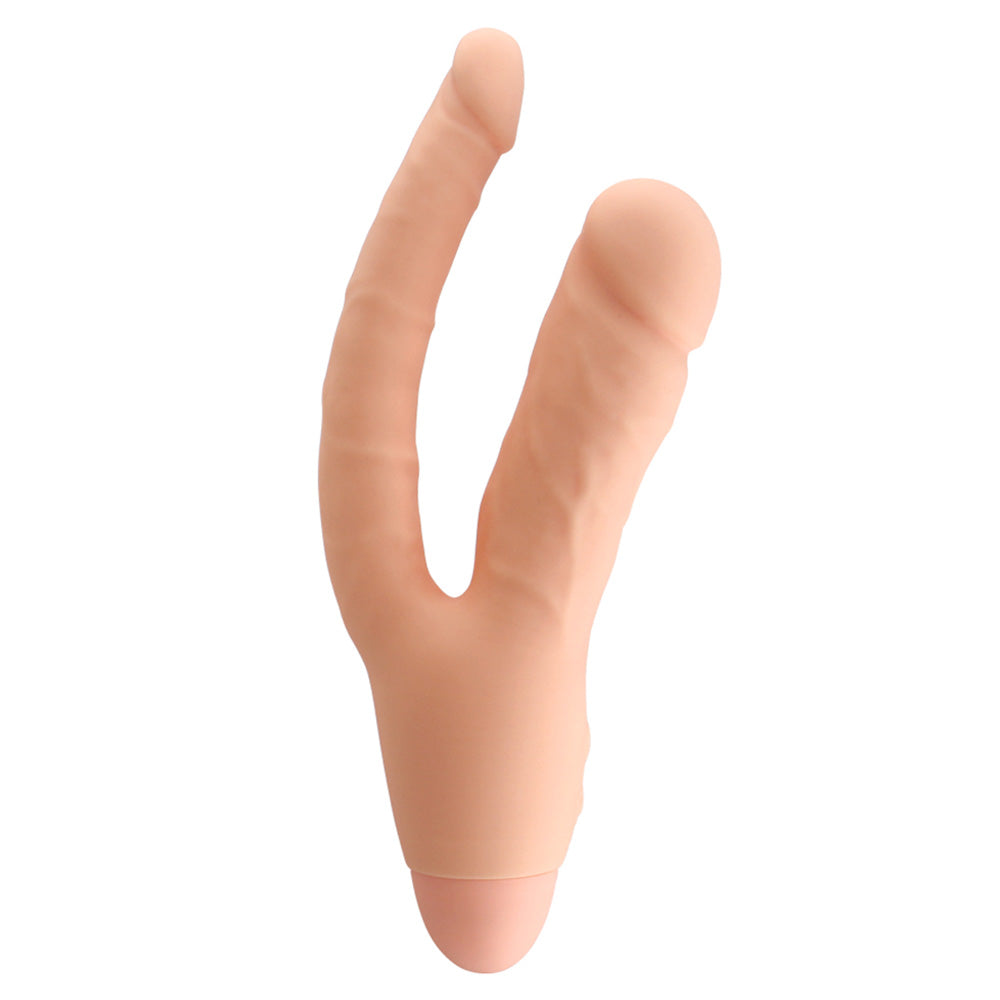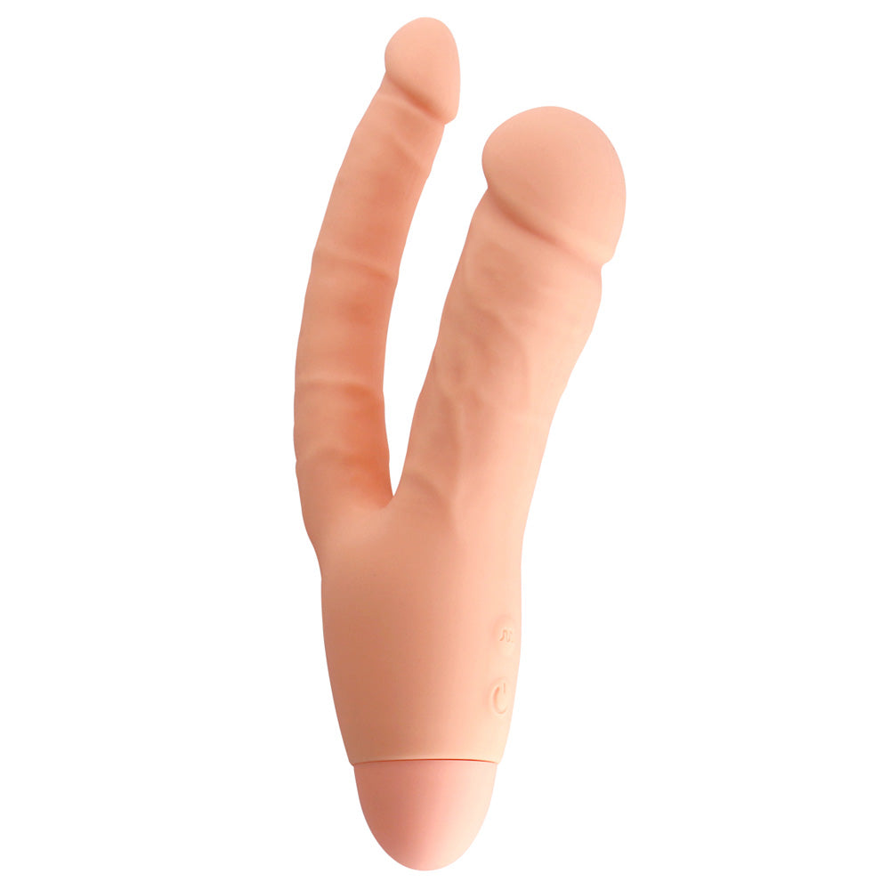 This DP vibrator features two insertable shafts of different thicknesses so you can choose the filling sensations you're most comfortable with. Each shaft is sculpted from soft and smooth silicone, with phallic details to offer a more realistic penetration experience, from the ridged, helmet-like heads to the veiny texture lining their length. Once you've popped in a pair of fresh AAA batteries and applied some of your favourite water-based lubricant, you can activate 10 thrilling vibration modes with just the touch of a button! Both shafts buzz in sync with each other so you can enjoy those good vibes together exactly where you're craving them...