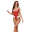 Dare your lover to meet you under the mistletoe in JSY's® 4-Piece Bodystocking Teddy Christmas Costume Set...
