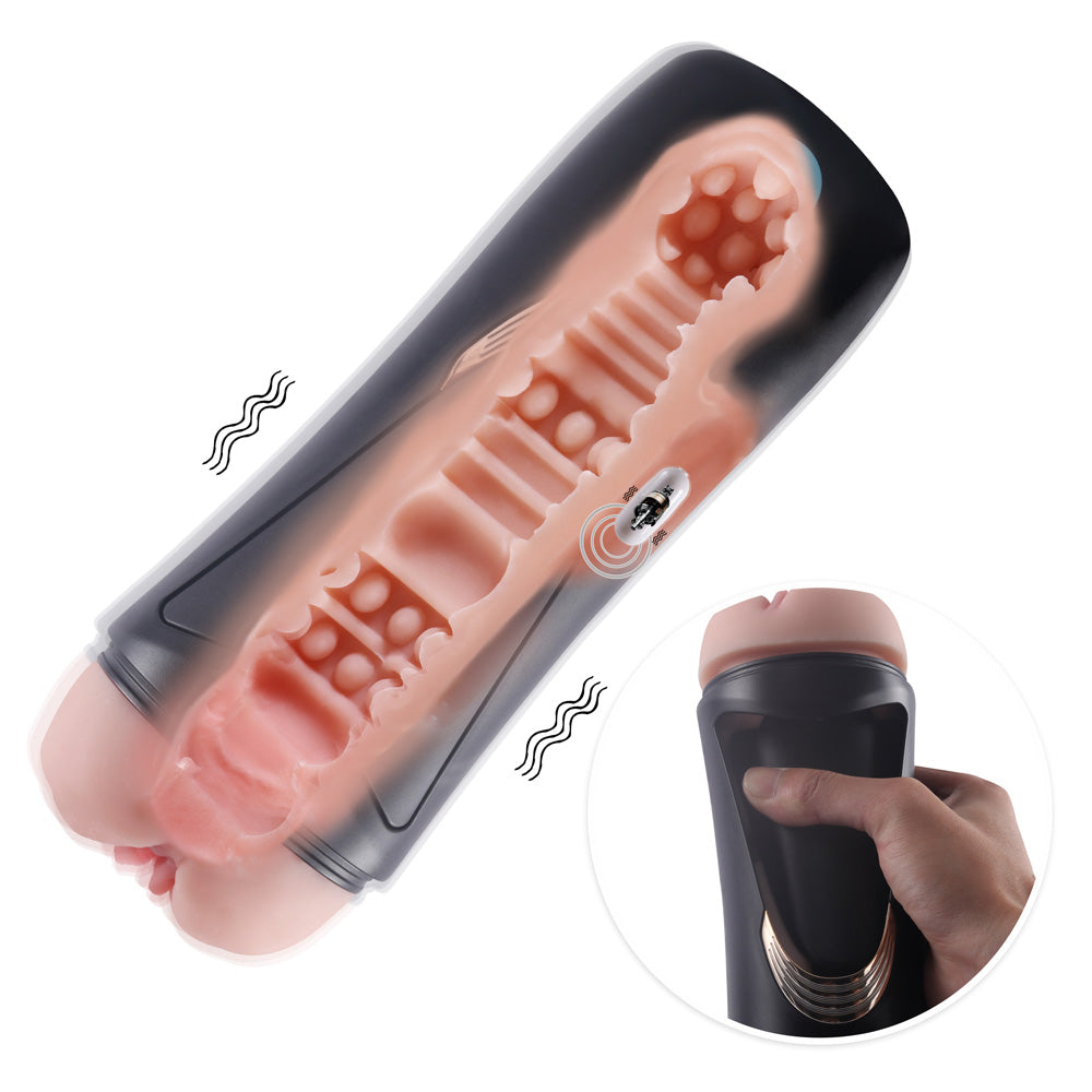 Key features of the Lauren Cup Squeezable Moaning Vibrating Vaginal Masturbator: