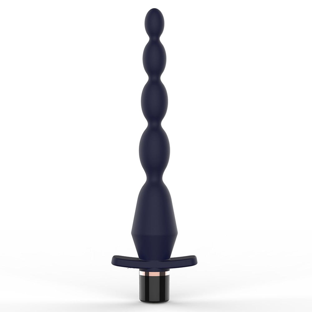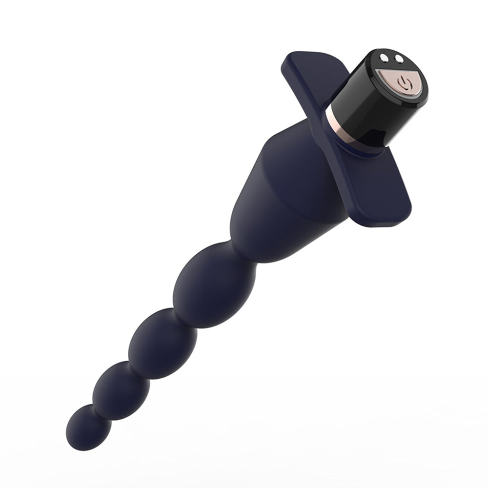 This unique anal sex toy combines the length and graduated sensations of anal beads with the full feeling of a plug to give backdoor fun lovers the best of both worlds! The slim, elongated beads are easy to insert and have a flexible shaft to move comfortably with your body, gradually increasing in size until you reach the base, which looks and feels just like a butt plug! Underneath the plug portion, a wide stopper base ensures this toy stays safely anchored outside your body and houses the single control button for the vibrating motor — with just the tap of a button, you can cycle through 10 whisper-quiet vibration patterns for delightfully discreet stimulation...