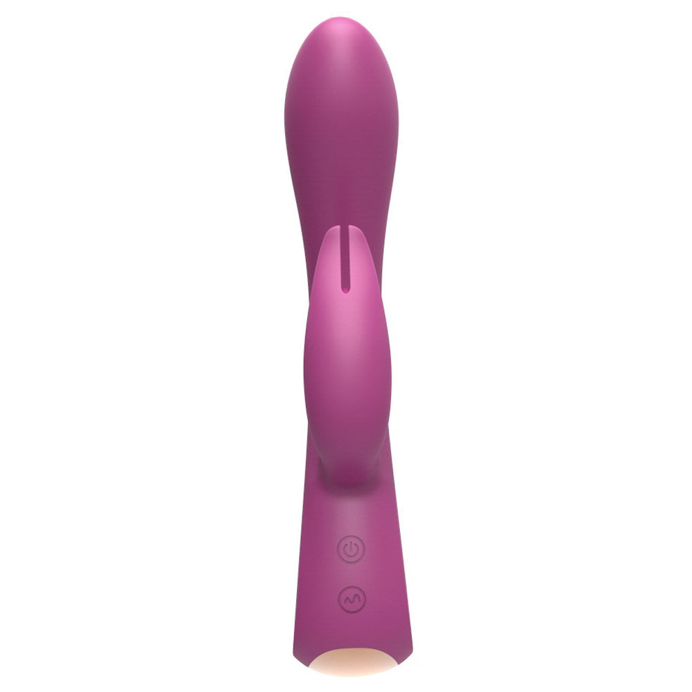 The ergonomically curved shaft is comfortable to hold in your hand and is also super-flexible to embrace your body's most intimate curves and conform perfectly to them.  The upturned bulbous head is sure to hit your G-spot just right while the bunny ears dance across your clitoris to take you to dual stimulation heaven! With 10 thrilling vibration patterns that buzz in sync across both the G-spot and clitoral heads, you're sure to be delighted inside and out at just the tap of the ~ button. If you're craving more intense stimulation to get you over the edge, there's a secret eleventh setting that activates when you hold the ~ button and buzzes both heads at maximum intensity!