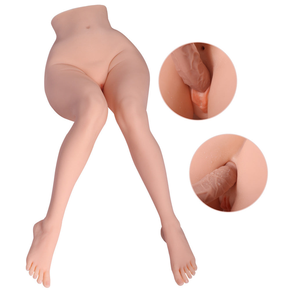 This is one of, if not THE most realistic replica of a woman's lower half you'll ever have the fortune to experience. She comes with two tight vaginal and anal love holes for you to enjoy, with a bumpy interior texture that is sure to have you unleashing your flood of pleasure time and time again! Her lusciously thick, long legs are topped by a slim waist that flares out to a seriously succulent booty and hips, and any foot fetishist will adore her expertly sculpted bendable feet. Top it off with her poseable metal skeleton and you'll be able to bend her into any position you like, perfect for lining yourself up anywhere on her beautiful body!