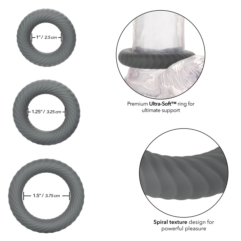 Wrap yourself in long-lasting pleasure with the Link Up™ Ultra-Soft™ Silicone Ultimate Spiral Cock Ring Set!