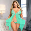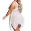 This lingerie set for curvy figures puts a trendy twist on a classic babydoll with its high-low hanky hem that tapers the skirt into points like a handkerchief, giving your look an effortless edge. This plus-size babydoll really is effortless to wear thanks to its swan hook closure at the front, which parts the split skirt like a curtain as you get ready to put on a show when you undo it! The sheer mesh skirt floats over your curves and is totally transparent to reveal the included G-string panty and contrast nicely with the lace embroidery at the shoulder rear and wire-free cups. Once you've adjusted the shoulder straps to your ideal length, you'll be ready to lounge, play, or sleep in comfort and style!