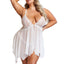 Make an unforgettable impression in the Plus-Size Hanky Hem Front Closure Babydoll & G-String from Lovely Lies...