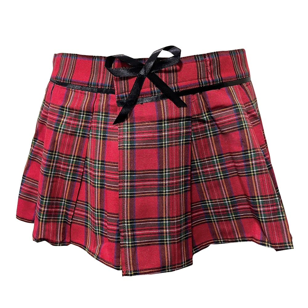 This micro-mini skirt is the perfect piece for any curvy schoolgirl to unleash their wild side in thanks to its scandalously short length that leaves plenty of your intimate assets on display. The boxy pleated design comes in a classic red tartan pattern with a sweet ribbon bowtie detail at the waist to add a playful touch of innocence. The panel adorned with the bow features adjustable Velcro closure so you can shimmy in and out of this skirt with ease while also ensuring your teacher's focus doesn't leave you for even a second!