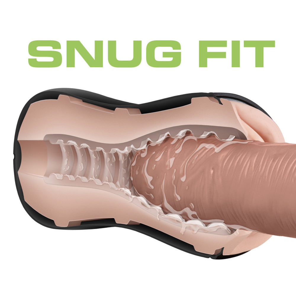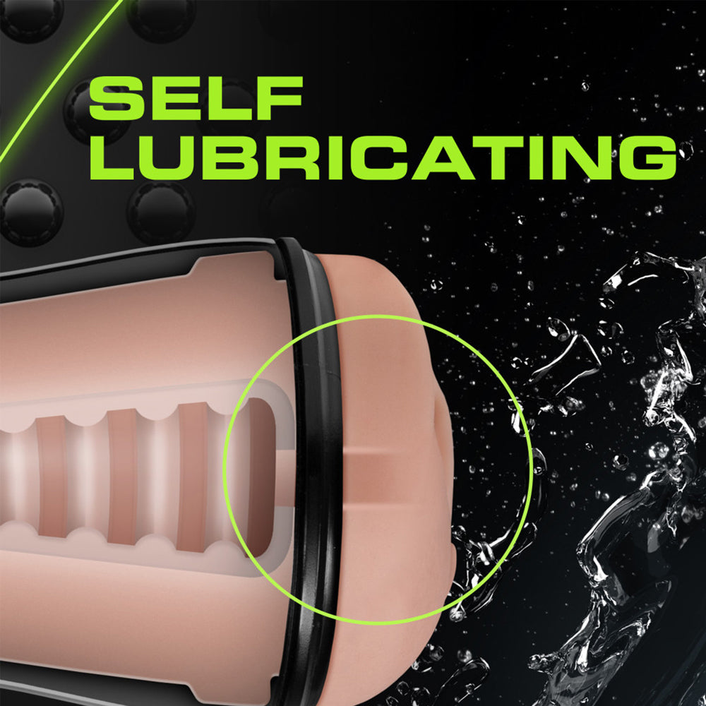 Key features of the M For Men Self-Lubricating Pussy Stroker With Pleasure Ridges: