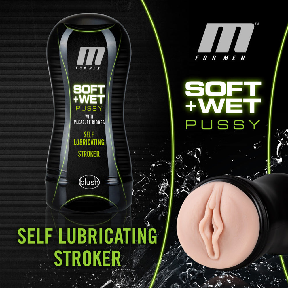 Take your solo stroking sessions to the next level with the M For Men™ Self-Lubricating Pussy Stroker With Pleasure Ridges from Blush's Soft & Wet collection!