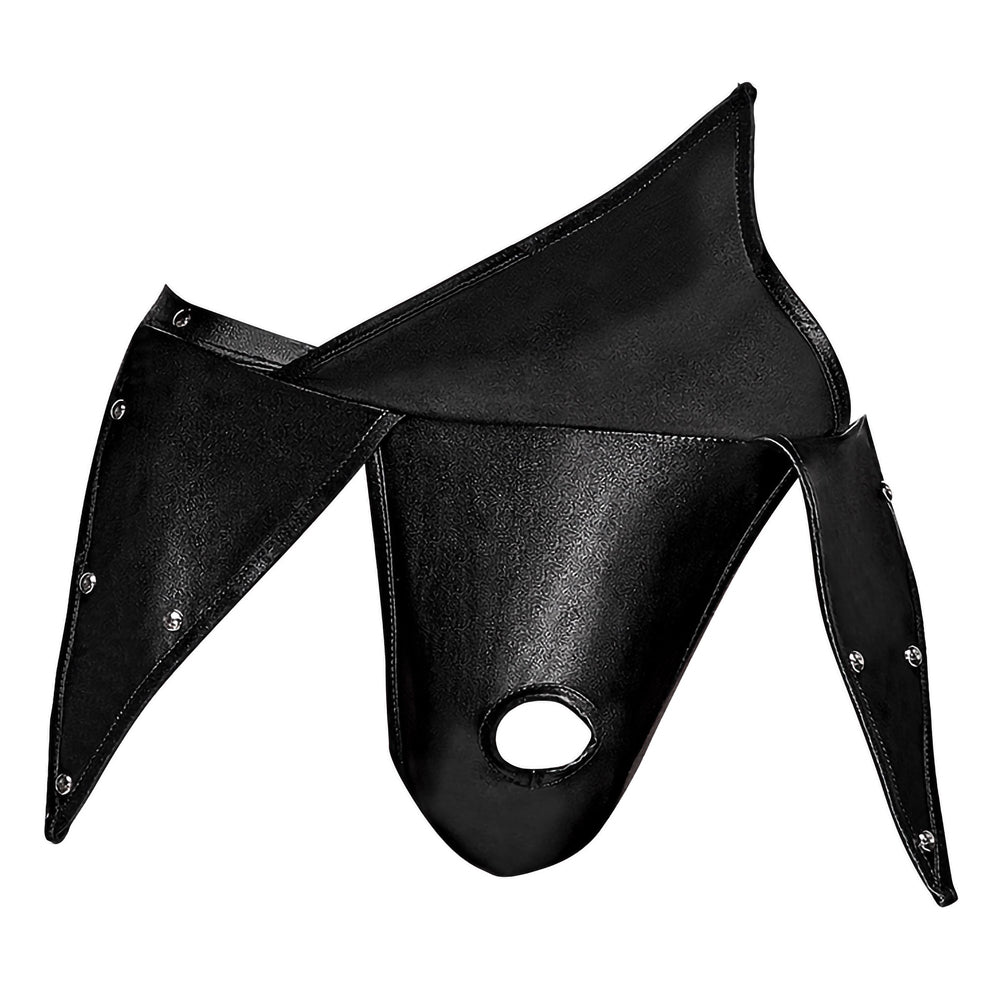 This unique gladiator-inspired fetishwear features a triangle-cut design with the kilt's centre flaps in the front and rear covering your most intimate assets. You can lift the flaps to expose more skin, as well as the attached thong underneath, which features a cutout peephole for your package and a seriously tantalising view of your buns! The 4-way stretch material feels comfortable against your skin and is adorned with decorative metal studs for an eye-catching finish that's sure to be a hit at your next BDSM event or private play session.