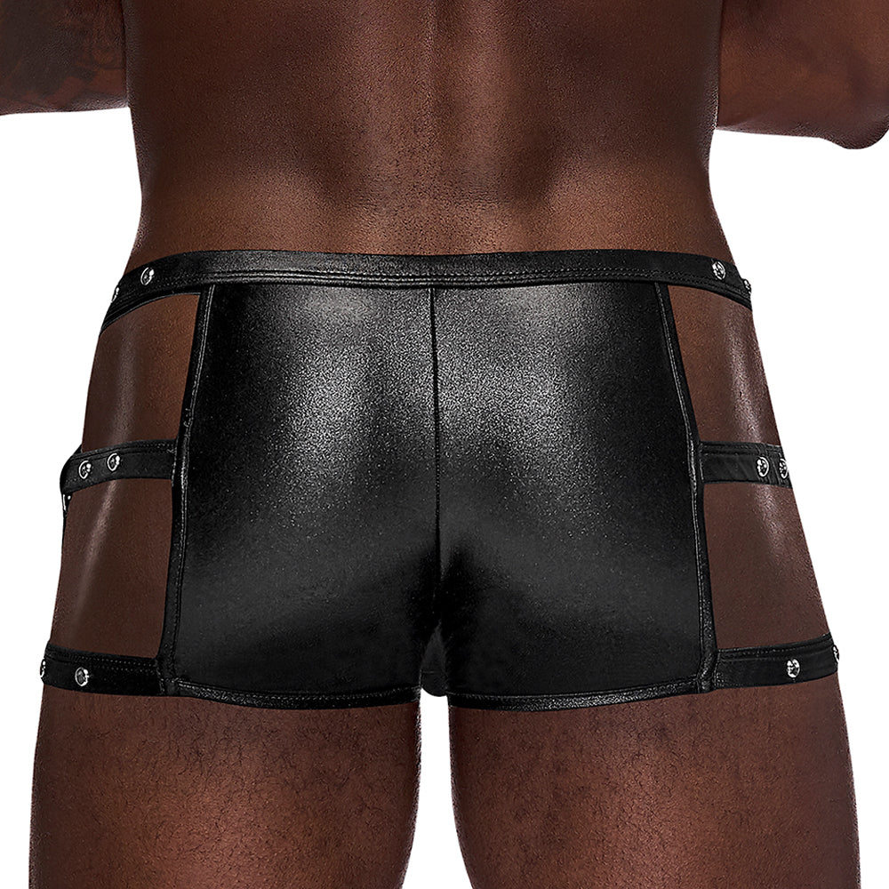 Key features of the Male Power Fetish Vulcan Wet Look Cage Short Trunks: