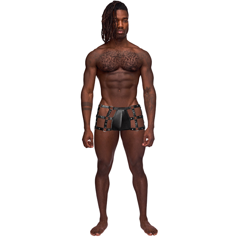 Captivate your onlookers in the Vulcan Wet Look Cage Short Trunks from Male Power's® Fetish range!
