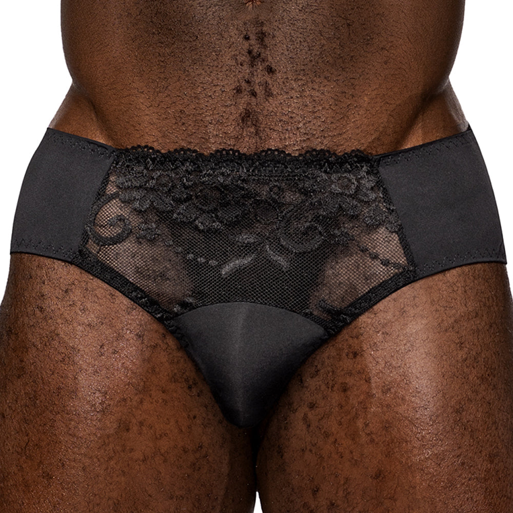 Key features of the Male Power Sheer Sassy Lace Solid Pouch Bikini Brief: