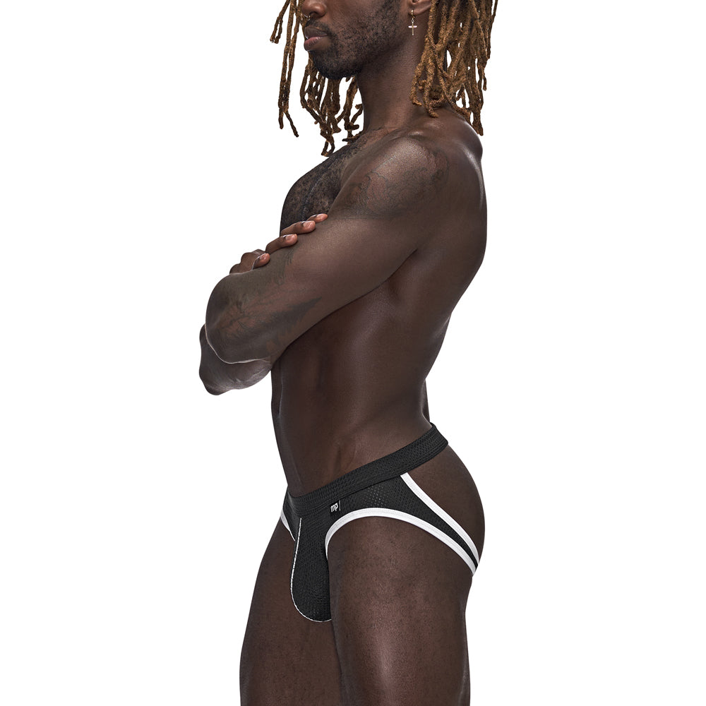 This men's jock adds light support during athletic activities and is made from a lightweight mesh. The material lets hints of your skin peek through its open holes and has great ventilation for superior breathability. The silky-soft material feels super-comfy against your package while the leg straps create an open rear that shows off your buns in a perfect little window. The contrast seams around the hem and down the front of the pouch offer support and definition while also giving you the ideal blend of sexy and sporty!