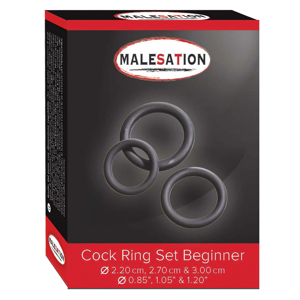 Enhance your erection to take your bedroom pleasure to new heights with the Malesation Beginner's Cock Ring Trio Set!