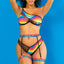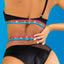 - Elastic rainbow trim with Show Off Your True Colors motto around the underbust, waist & thighs