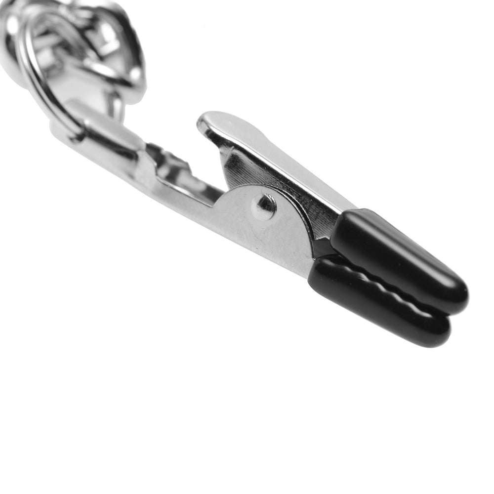 This unique BDSM accessory connects your sub's most sensitive areas together with high-quality metal chains and adjustable clamps that are tipped with vinyl for a more comfortable pinch. The genital clamps can be attached to the labia, clitoris, or testicles for a deliciously torturous hands-free pinching sensation that stays put and looks as good as it feels for subs and slaves of any gender!