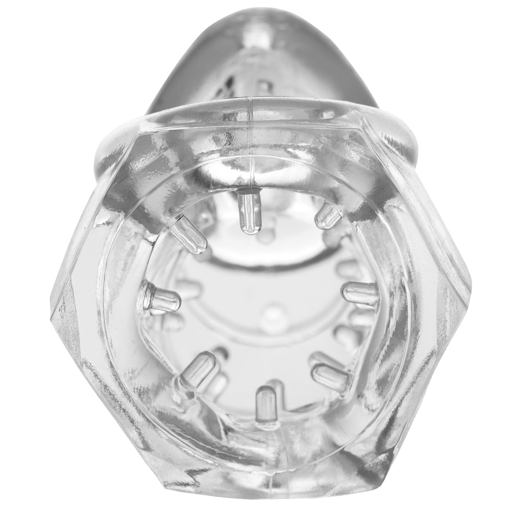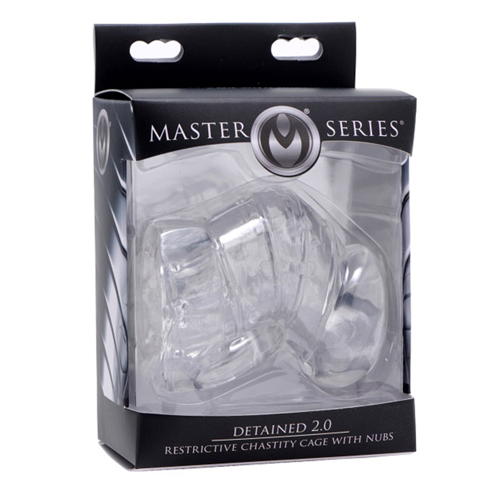 Keep his package in your sight and out of his hands with the Master Series™ Detained 2.0 Clear Restrictive Chastity Cage!