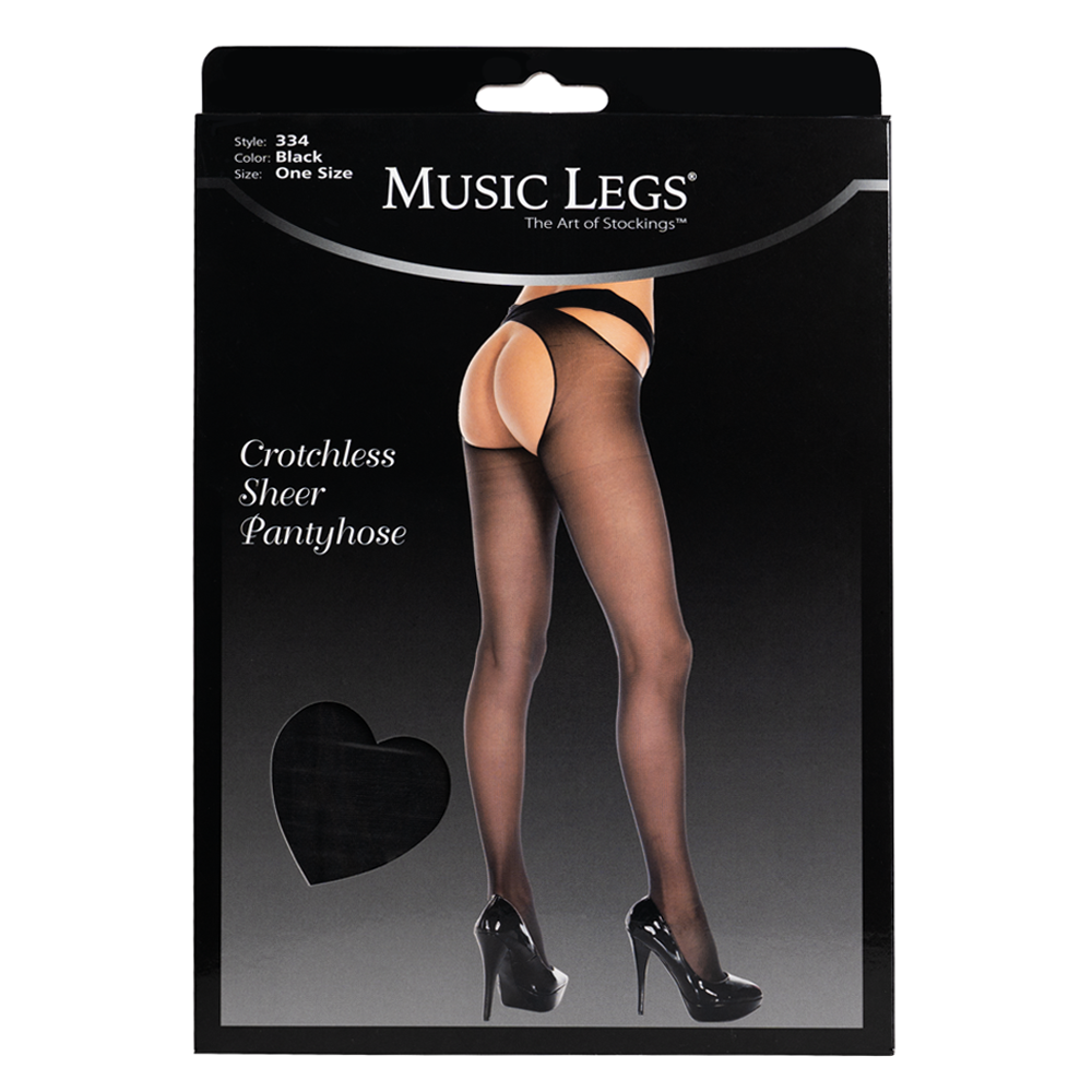 Hide a sexy secret under an everyday outfit or dare to bare yourself in Music Legs'® Sheer Crotchless Criss-Cross Suspender Pantyhose...