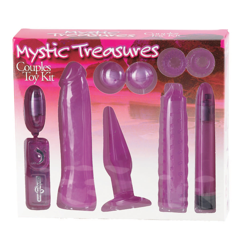 Up for a little experimentation together? Explore and enjoy all the goodies in the Mystic Treasures Couples Vibrating Toy Kit!