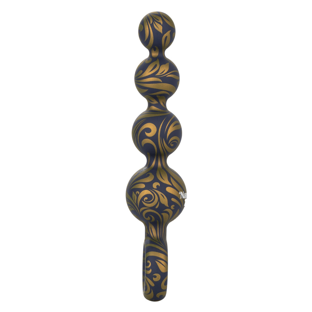 The Naughty Bits Butt Balls are made from smooth and flexible silicone in an eye-catching marbled gold and navy design for pleasure that looks as good as it feels. The waterproof material is a cinch to clean with warm water and toy cleaner so it's easy to get your Silicone Booty Beads ready for your next anal adventure!