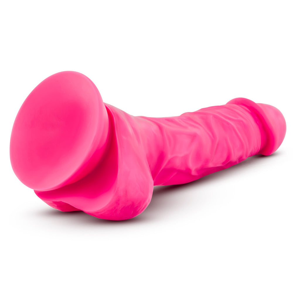 The sculpted phallic head offers that natural-feeling 'popping' sensation upon insertion and the veiny texture on the shaft rubs enticingly against your inner walls with every thrust. The thick testicles make this dildo safe for anal or vaginal play while the strong suction cup base lets you mount your Neo Elite Cock & Balls Dildo to flat, firm surfaces for hands-free fun! The suction cup is also harness-compatible if you're partner wants in on the action too...