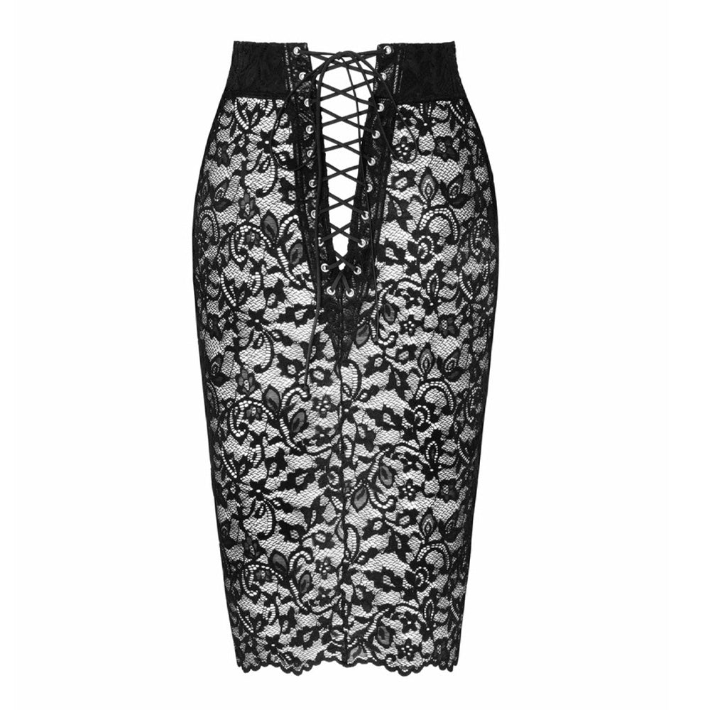 All heads are sure to turn your way when you make your entrance in Noir Handmade's® Ambivalent Sheer Lace Corset-Back Midi Skirt!