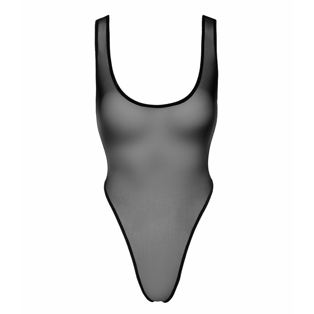 Key features of the Noir Handmade Paparazzi High-Cut Sheer Mesh Tank Bodysuit: