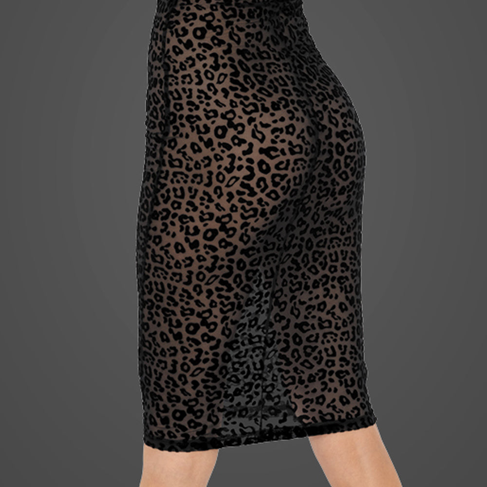 This sexy long sleeve dress lightly obscures your curves behind sheer mesh with a flocked leopard print motif that lets your skin play peekaboo through the pattern. The off-shoulder design exposes your collarbones and upper shoulders in the rear, giving your lucky prey somewhere to pepper light, loving kisses. The whole thing is made from feather-light mesh and velvety-soft flocking for an irresistible feeling under your hands, or a lover's...
