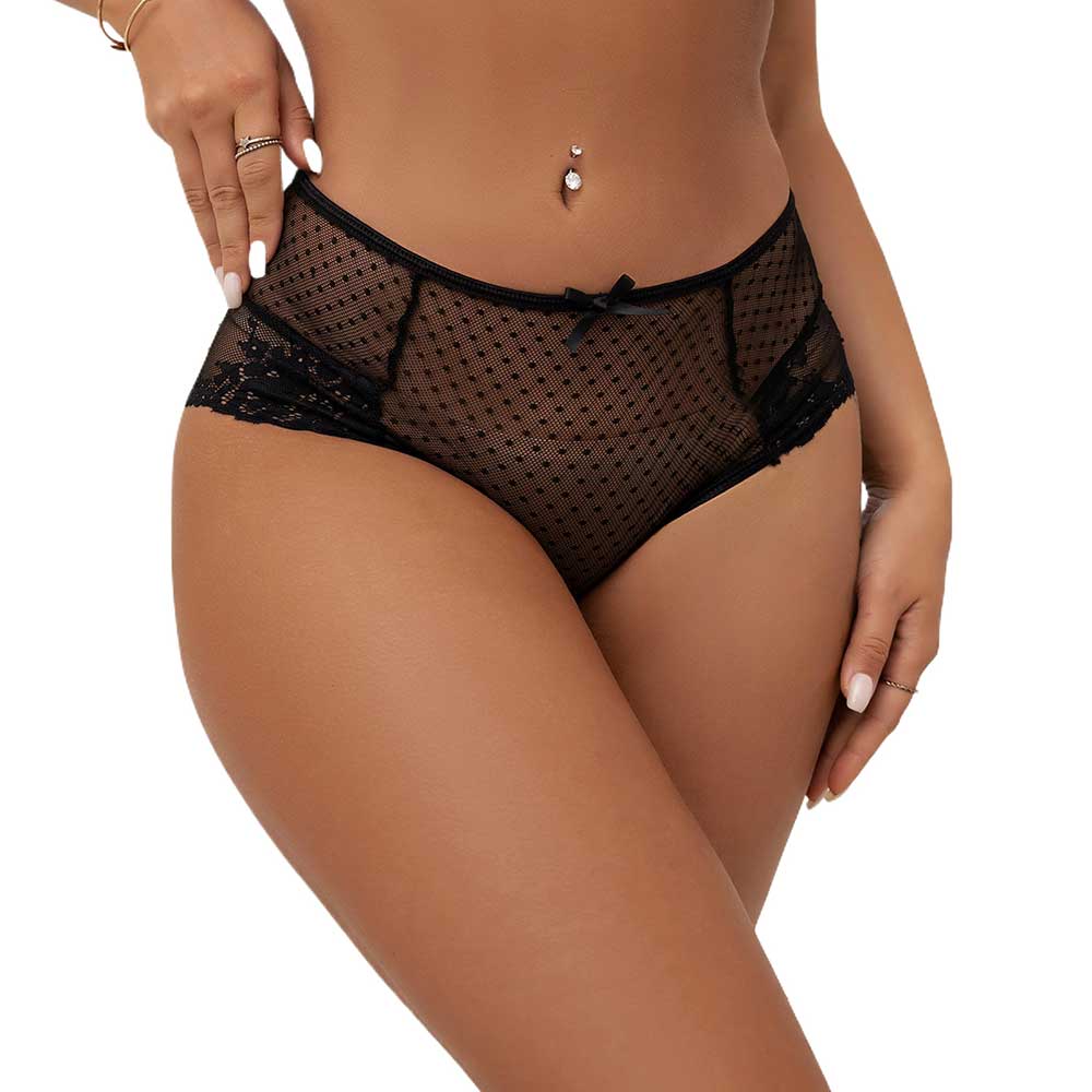 Key features of the Oh Yeah Corset Back Sheer Polka Dot Mesh & Lace Panty: