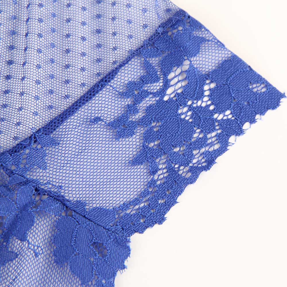 - Combines sheer floral lace & polka dot-patterned mesh for a playful peekaboo finish