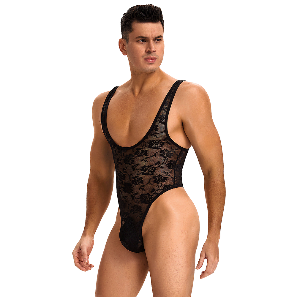 Key features of the Oh Yeah Men's Sheer Floral Lace Thong Leotard: