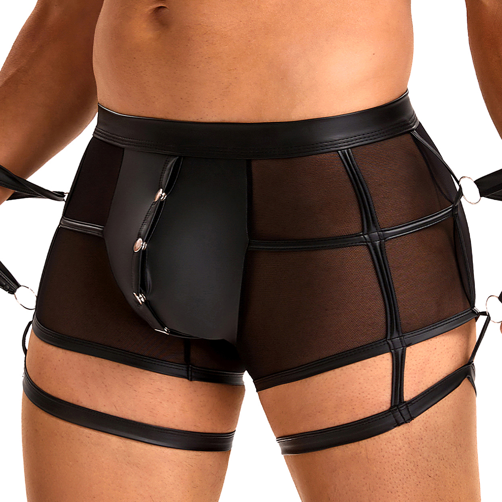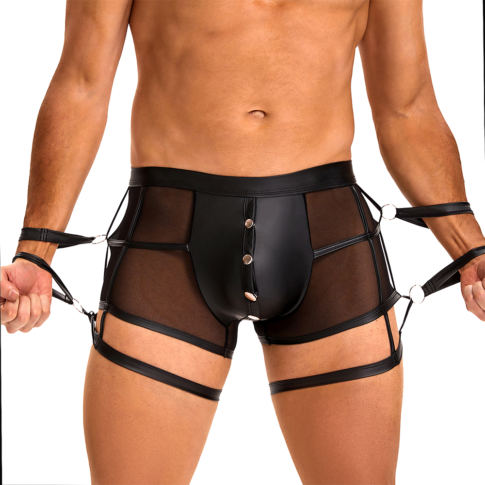 Key features of the Oh Yeah Wet Look & Mesh Boxers With Cuffs: