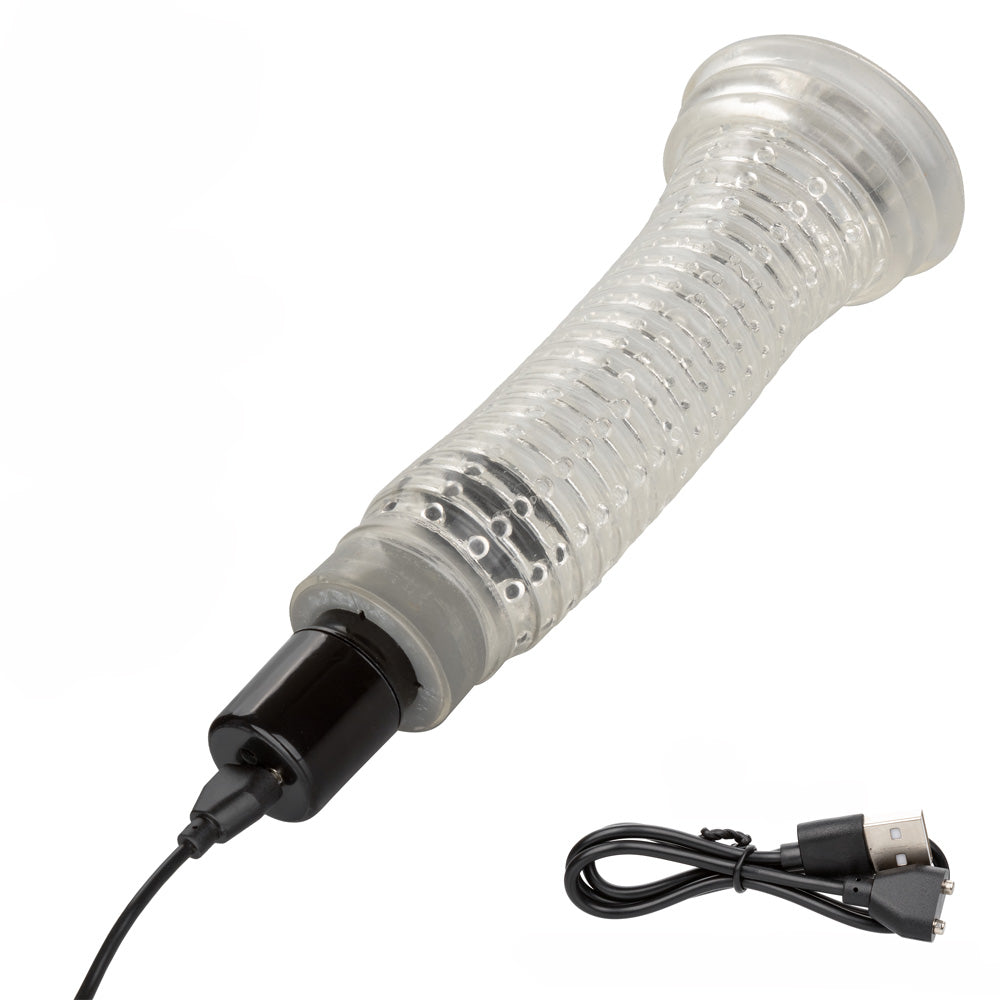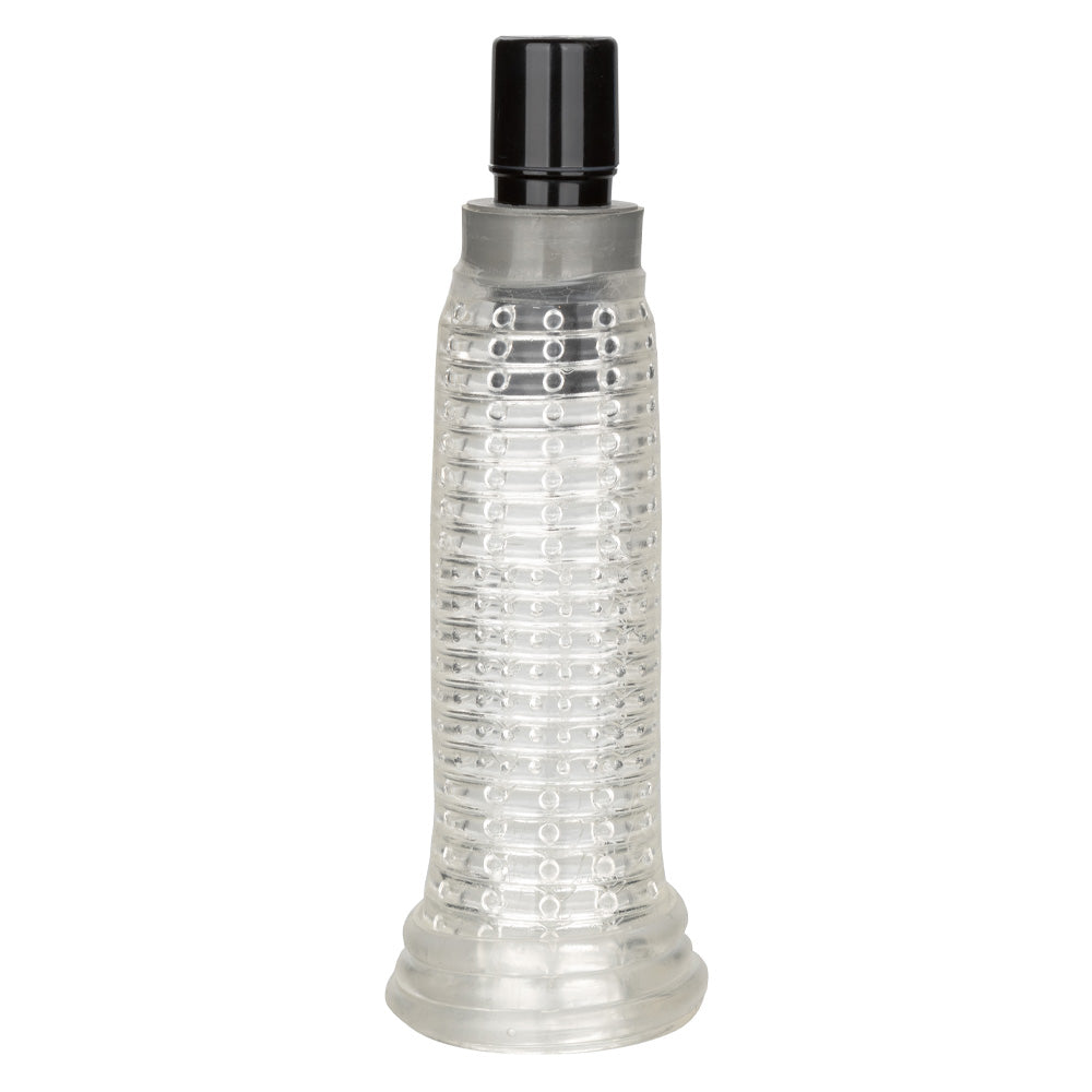 This innovative penis pump is the world's first pressure-activated vibrating pump, designed to intensify your pumping sensations and provided unparalleled pleasure. It features a unique vibration system that activates automatically once the optimum pressure is reached, buzzing all around you while the air pressure inside powers up your member! The inside of the sleeve is also textured for even more stimulation...