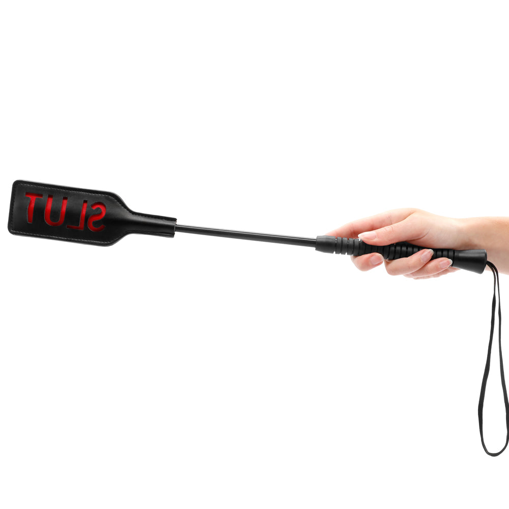 Brand your plaything with their status for the world to see with the Large Faux Leather Slut Impression Crop from Ouch!
