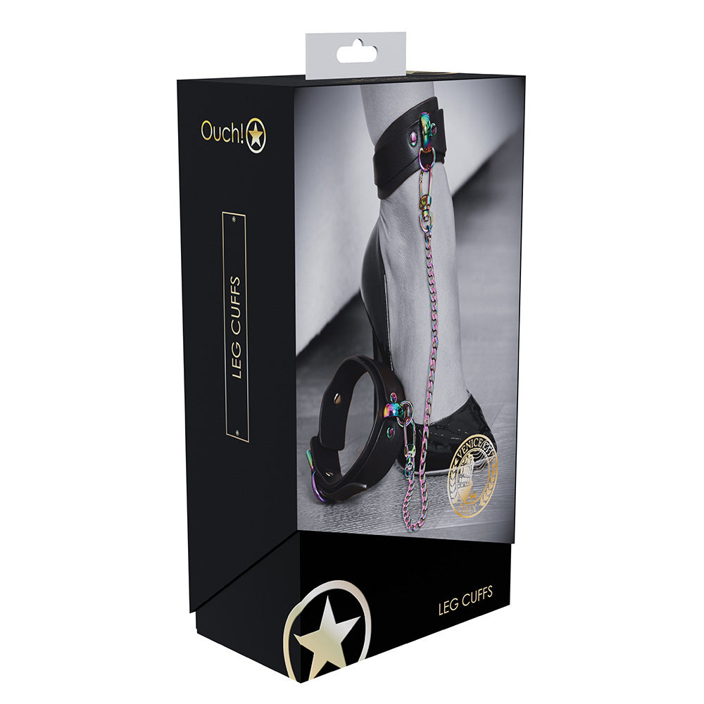 Enjoy some fashionable bondage fun with the Venice Faux Leather & Rainbow Neochrome Ankle Cuffs from the Ouch! International collection!