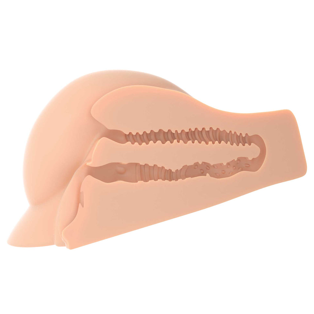 You'll love how realistically this doggy-style stroker jiggles when you spank the squeezable round cheeks and when you thrust in and out of the tight love tunnels. Choose from the fleshy vaginal lips or the puckered anus and watch them cling to your throbbing member as they welcome you into their deliciously ribbed chambers to stimulate you all over with awesome textures! Both tunnels are connected in a U-shape design and have unique textures inside for varied sensations, spoiling you for choice every time you want to go for a ride...