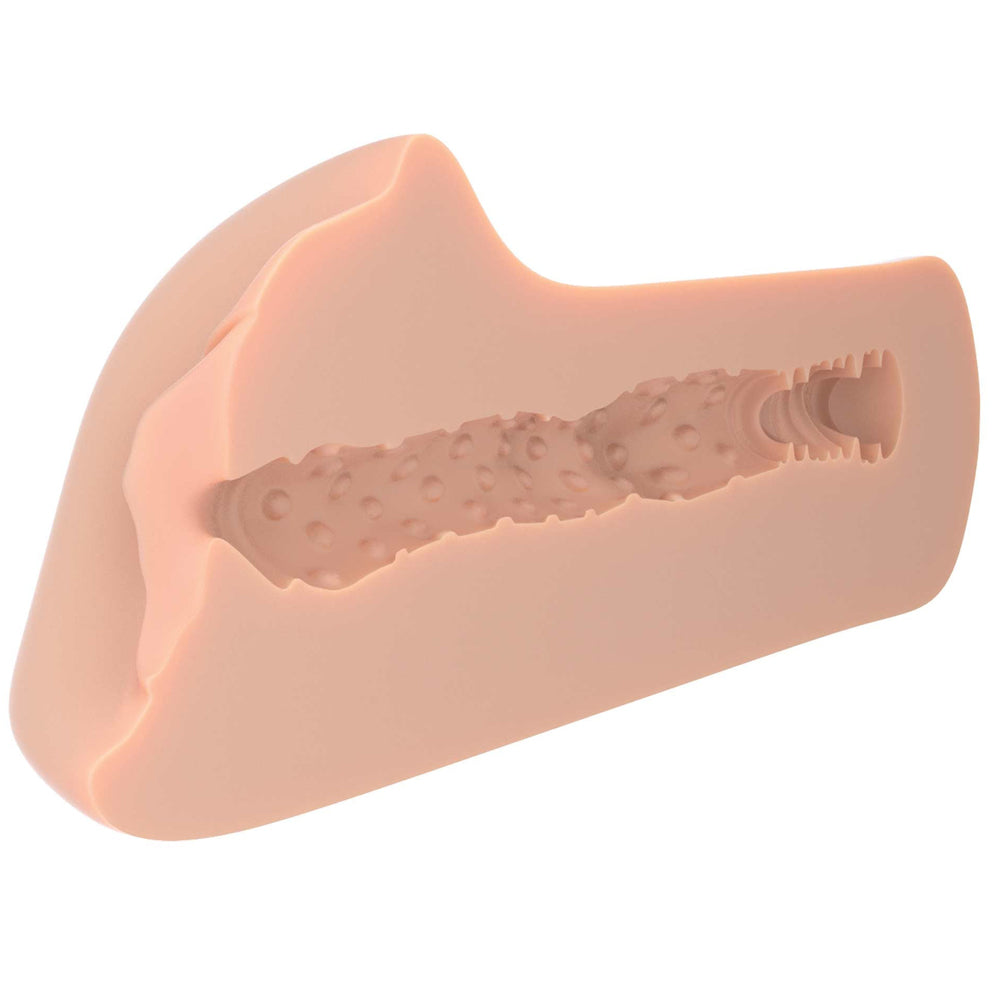 This ultra-realistic pocket pussy features a pair of splayed vaginal lips that can't wait to engulf you and pull you deep into the intricately textured love tunnel that lies beyond them. Dozens of pleasure bumps and nodes ripple across the interior to rub and massage your head and shaft as you pump away, giving you the knee-shaking stimulation you're craving...